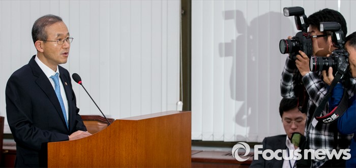 △ 17일 오후 서울 여의도 국회 외교통일위원회 회의실에서 열린 프랑스 파리 테러사태 관련 간담회에 참석한 임성남 외교부 1차관이 현안보고를 하고 있다. <사진제공=포커스뉴스>