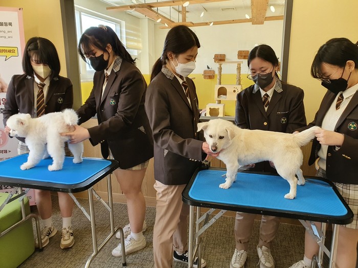 같은 날 고양시동물보호센터에서 고양고등학교 학생들의 재능기부로 유기견 미용이 진행됐다. 시는 지속적인 학생들의 재능기부로 유기견 입양이 촉진될 것으로 기대하고 있다.