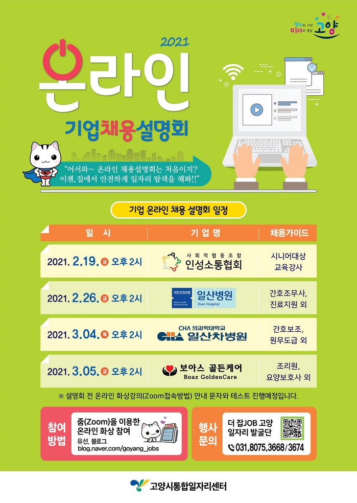자세한 내용은 고양시일자리통합정보 홈페이지혹은 블로그를 확인하거나 고양시통합일자리센터로 문의하면 된다.