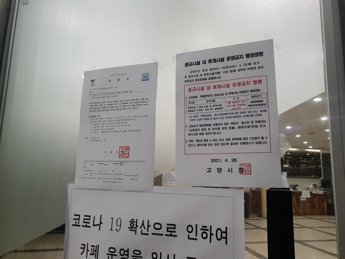 이에 따라 이달 28일부터 5월 10일까지 관내 종교시설 내 카페·식당·휴게실 운영이 중지된다. 취식 및 다중담화도 금지된다.