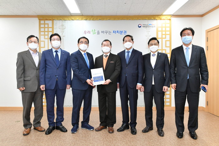 이날 면담 자리에서는 지방자치단체가 사무를 종합적이고 자율적으로 수행할 수 있도록 보충성, 포괄배분의 원칙에 따른 사무 이양을 건의했다. 아울러 지역 여건에 맞는 다양성 있는 지역특례 권한 이양에 대해서도 의견을 냈다.
