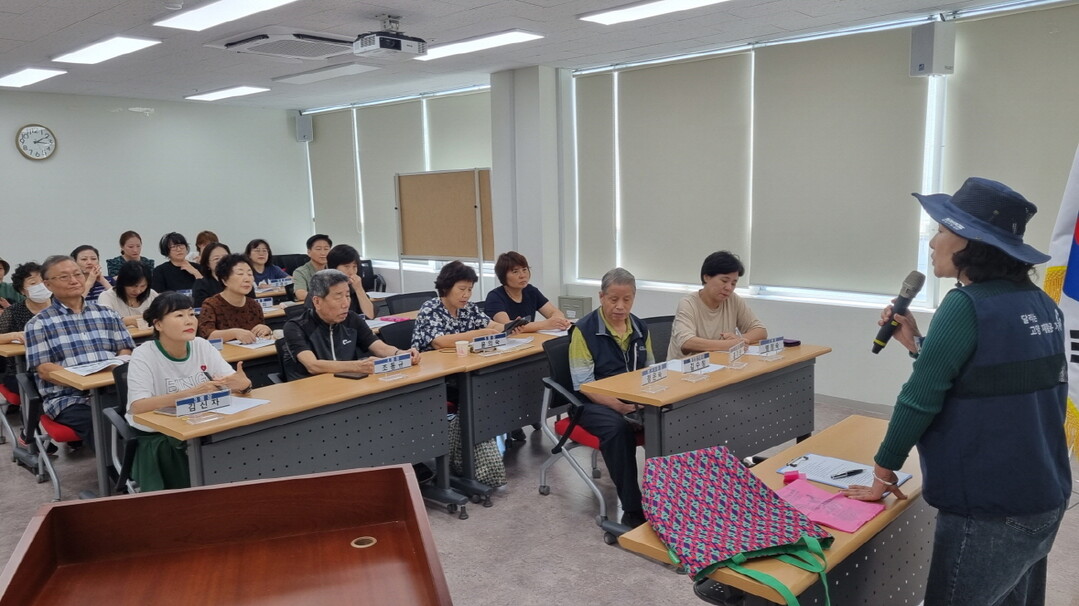 이번 교육은 행신4동 통장협의회 주관하여 실시했다. 교육을 위해 고양시 자원순환 활동가인 강성심 강사를 초빙했고, 탄소배출 감소 및 자원분리배출 방법 등에 대해 배우는 시간을 가졌다.