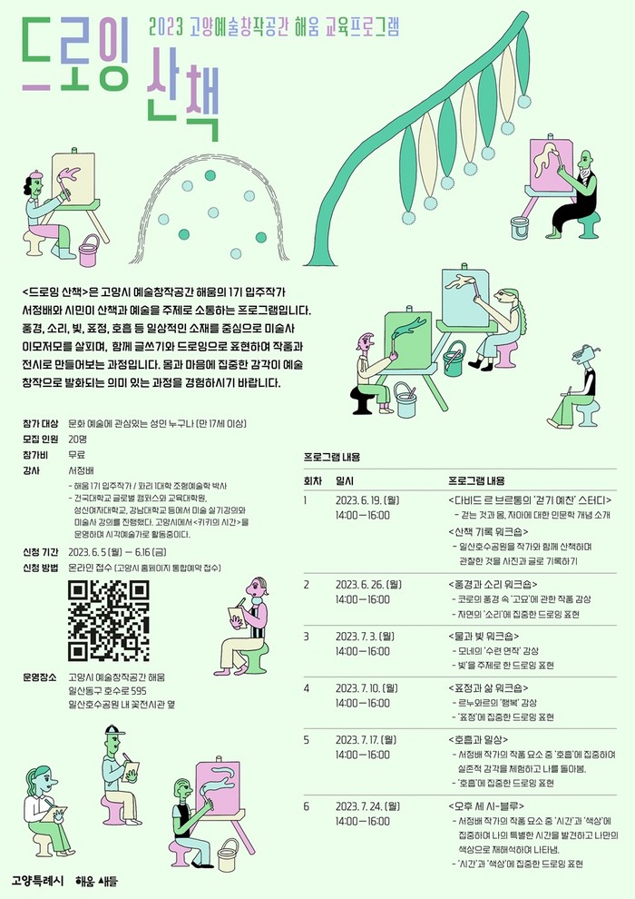 [부자동네타임즈 김인수기자] 고양예술창작공간 ‘해움’에서 오는 6월 19일부터 7월 24일까지 시민 참여형 미술 교육 ‘드로잉 산책’을 운영한다.