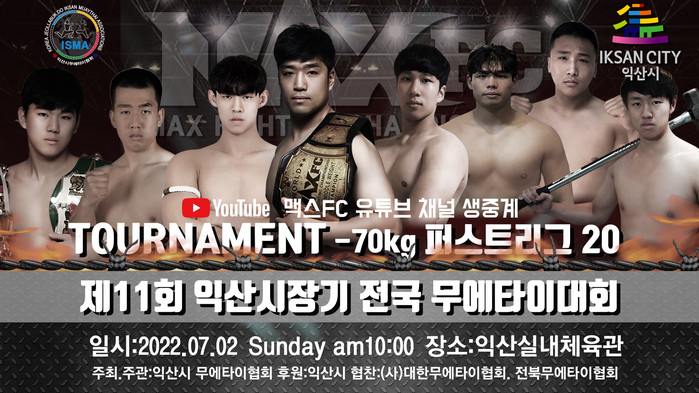 한편 MAXFC ‘퍼스트리그 20 더블 토너먼트’ 대회는 7월 2일 전북 익산 실내체육관에서 개최되며,코로나 이후 첫 관중 입장이 허용된다. VIP를 제외한 전 관람석 무료 입장으로 진행되며, MAX FC 유튜브 채널에서 생중계된다.