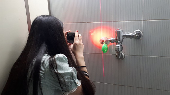 [사진설명] 전문 장비를 이용해 불법 촬영장비를 탐지하는 모습.