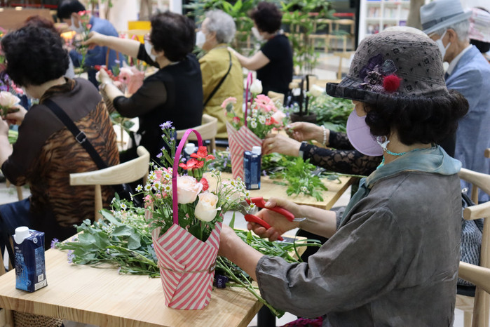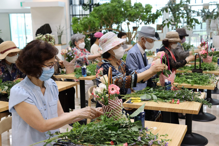 이벤트에 참여하신 어르신들은 약 한 시간 동안 다양한 꽃의 종류와 특징들에 대해 알아본 후 여러 가지 꽃으로 바구니를 꾸미며 스트레스 해소, 정서 안정, 대·소근육 운동 등 다양한 효과가 있는 원예 활동을 체험하고, 고양꽃전시관 플라워북카페의 다양한 실내 시설을 이용하며 다함께 즐거운 친목의 시간을 가졌다.