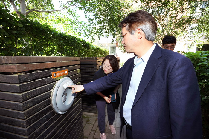 [사진설명] 허마비 허스타드(쓰레기 자동수거 시스템을 살펴보는 이동환 고양특례시장)