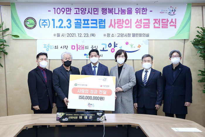이재준 고양시장은 “코로나19 장기화로 모두가 힘든 시기에 지역사회 이웃들을 위하여 꾸준한 나눔을 실천해 주시는 ㈜1.2.3 골프크럽에 진심으로 감사드리며, 이런 훈훈한 분위기 속에서 우리 모두가 따뜻하고 안전한 연말을 보냈으면 한다”고 소감을 전했다.