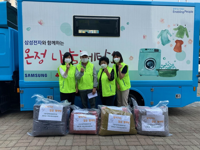 ‘찾아가는 깔끔 빨래방’은 고양시장애인종합복지관의 이동빨래차량을 이용해 관내 저소득 독거노인 및 장애인 가구의 이불빨래를 지원하는 사업이다. 거동불편으로 대형빨래가 어려운 대상자들을 위해 세탁물 수거, 세탁 및 건조, 배달까지 원스톱세탁서비스를 제공해 쾌적하고 건강한 주거환경을 유지 할 수 있도록 도왔다.