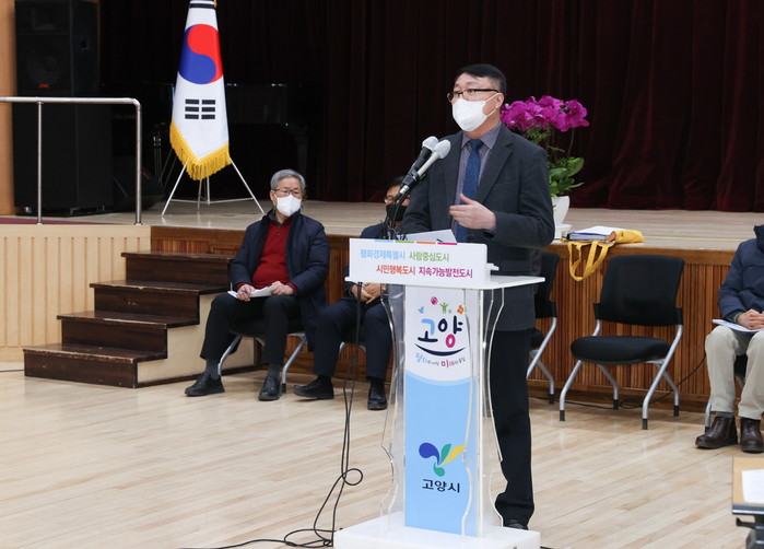 [사진설명] 마두동 상가 기둥파손 안전진단결과 발표 현장(이춘표 부시장)
