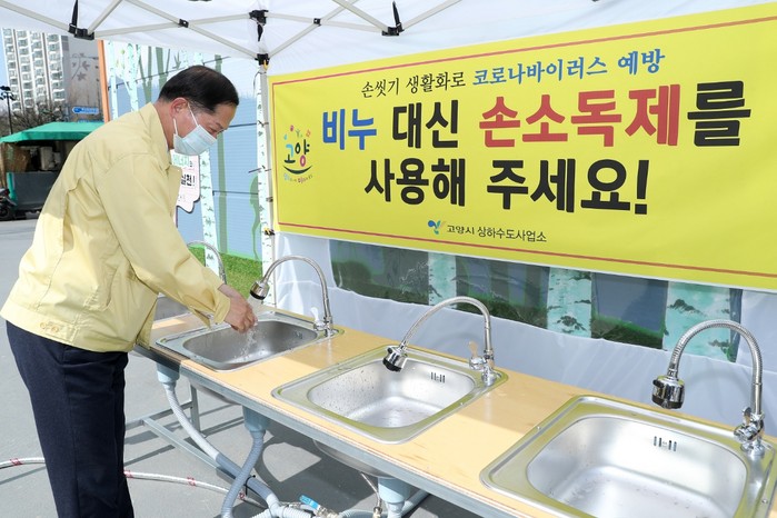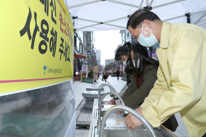 [부자동네타임즈 김인수기자] 고양시(시장 이재준)는 시민들이 길거리를 오가며 간편하게 손을 씻을 수 있는 ‘임시 손세정대’를 주요 지하철역 주변과 광장에 설치한다고 밝혔다.