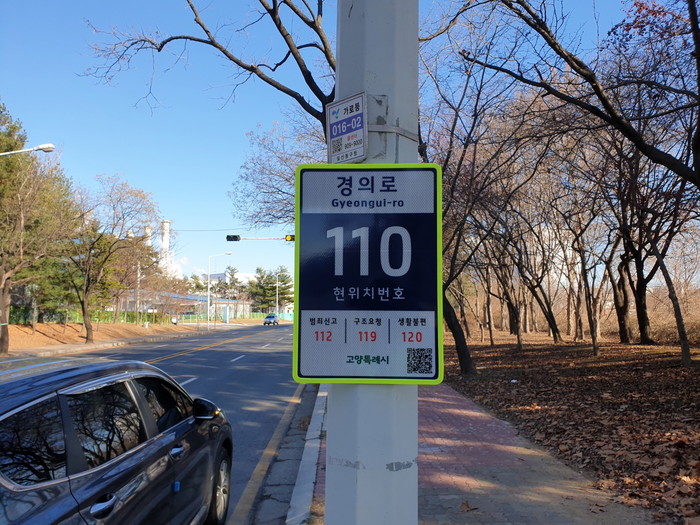 시는 관내 주요 도로구간 중 ▲경의로 ▲호수로 ▲새빛로 ▲창릉천 자전거길을 선정하여 총 467개소에 기초번호판을 설치했다. 특히 보행자용 기초번호판은 고양시 최초로 범죄예방환경설계(CPTED) 기법을 주소정보시설에 도입하여 야간 통행 시 시민의 불안감을 감소시킴과 동시에 범죄를 예방하고자 태양광 LED로 제작했다.