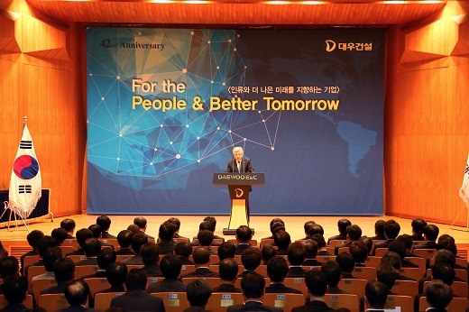 △ 30일 대우건설 본사 강당에서 창립 42주년 기념식을 진행하고 있다.  <사진제공=대우건설>