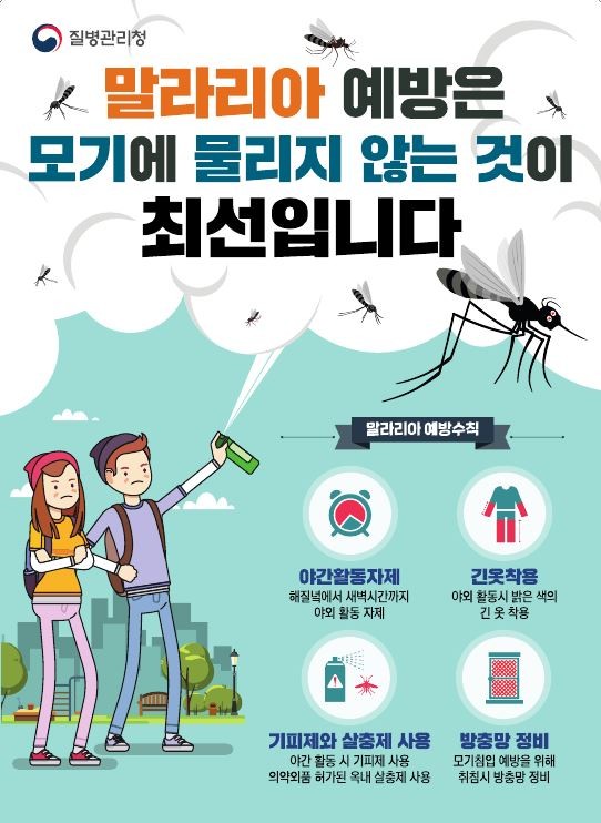 보건소 관계자는 “말라리아 발생 지역에 거주하거나 해당지역을 방문하는 경우 말라리아 감염 예방수칙을 반드시 준수해야 하며 모기에 물린 후 말라리아 의심 증상이 발견되면 즉시 의료기관에 방문해 달라.”고 당부했다.