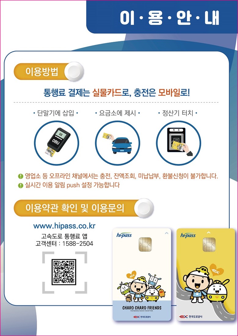ex-모바일 충전카드는 모바일 앱(고속도로 통행료)을 통해 충전하는 하이패스 전용 선불카드다.