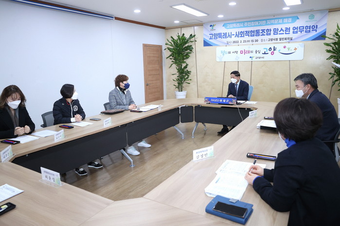 [부자동네타임즈 김인수기자] 고양시는 주민 참여와 민간 협업을 통한 성공적인 정책 이행을 위해 지난 23일 고양시청 열린회의실에서 사회적협동조합 맘스런(이사장 이명아)과 업무협약을 체결했다.