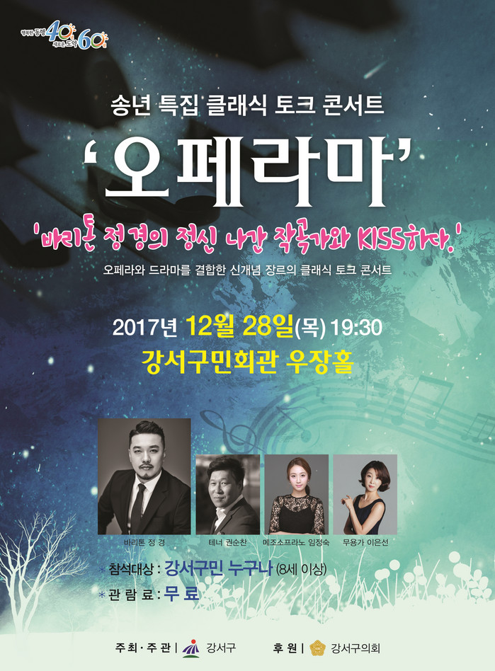 공연은 오후 7시 30분부터 시작하며 8세 이상 강서구민이면 누구나 무료로 관람할 수 있다.