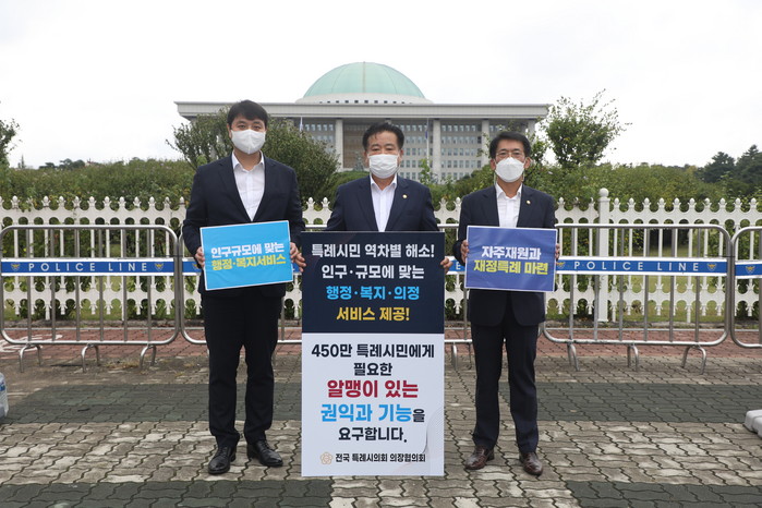 또한, 이들은 국회 방문을 마치 후 국회 앞 1인 피켓 시위에 나서 국회와 정부가 450만 특례시에 인구와 규모에 걸맞는 기능 확대를 위한 제도적 기반을 마련하고 특례시의 법적 권한을 부여하는 지방자치법 시행령 등 관계법령의 조속한 통과를 촉구했다.