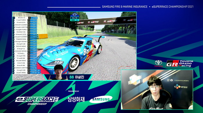 [부자동네타임즈 김인수기자] 지난 주 막을 내린 2021 CJ대한통운 슈퍼레이스 챔피언십의 뜨거웠던 열기가 온라인으로 이어진다. 슈퍼레이스 챔피언십 상위 클래스의 12개 프로 레이싱팀이 참가해 관심을 모으고 있는 ‘2021 삼성화재 e슈퍼레이스 챔피언십’이 22일(월) 팀전 공식 개막을 알리며, 1, 2라운드를 연달아 진행했다.