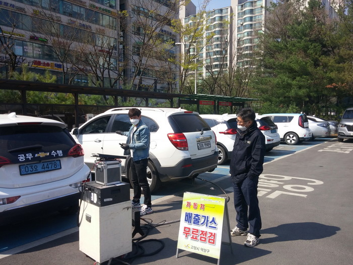 [부자동네타임즈 김인수기자] 고양시 덕양구는 미세먼지의 주범인 경유차 배출가스를 줄이고 쾌적한 대기환경을 조성하기 위해, 지난 6일 덕양구청 지상 주차장에서 오전 10시 30분부터 1시간 동안 경유 자동차를 대상으로 자동차 배출가스 무료점검을 실시했다.