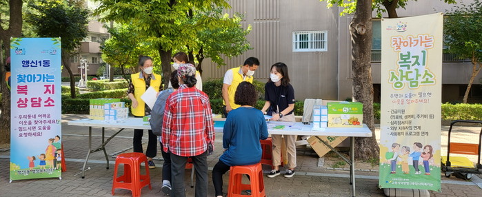 [부자동네타임즈 김인수기자] 고양특례시 행신1동 행정복지센터는 지난 21일 덕양행신종합사회복지관과 함께 관내 샘터마을 회화나무공원에서 찾아가는 복지상담소를 진행했다.