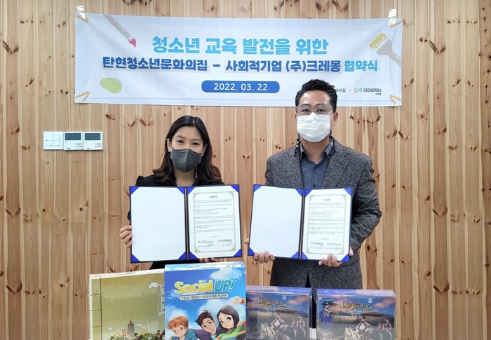 [부자동네타임즈 김인수기자] 고양시청소년재단 산하 시설인 탄현청소년문화의집은 고양시와 탄현동의 역사화 문화를 청소년들이 쉽게 배울 수 있는 교육용 보드게임 공동개발을 위해 교육서비스 제공 사회적기업인 ㈜크레몽(대표 오은강)과 지난 22일 업무협약(MOU)을 체결했다고 밝혔다.