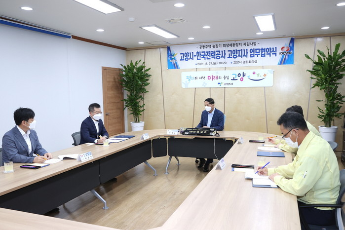 [부자동네타임즈 김인수기자] 고양시가 27일 ‘공동주택 승강기 회생제동장치 지원사업’과 관련하여 한국전력공사 고양지사와 업무협약(MOU)을 체결했다.