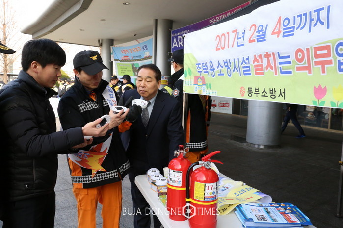 광주광역시 소방안전본부는 설을 맞아 26일 서구 광천동 유스퀘어 광장에서 소방안전본부, 한국전기안전공사 광주전남지역본부, 한국가스안전공사 광주전남본부, 5개 소방서 등 13개 기관에서 150여 명이 참가해 '설 명정, 주택용소방시설 선물하기' 캠페인을 펼쳤다.