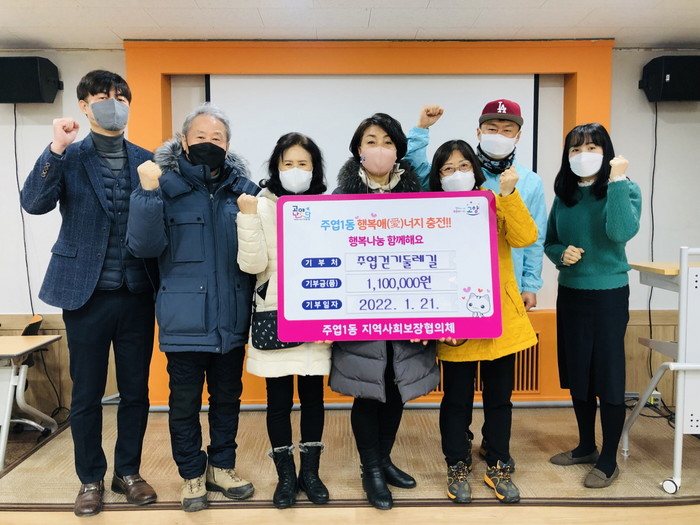 [부자동네타임즈 김인수기자] 고양시 주엽1동 지역사회보장협의체(공공위원장 이주훈)는 지난 21일 주엽걷기둘레길 동호회(회장 김희섭)로부터 후원금 110만 원을 기탁받았다고 밝혔다.