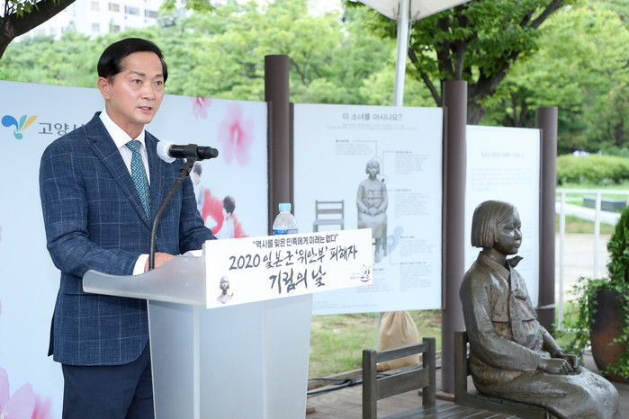 이 시장은 그동안의 한 맺힌 삶, 그리고 아직 현재진행 중인 상처와 슬픔에도 결코 투쟁을 멈추지 않으시는 피해자 어르신들께 위로와 격려를 보내며, “고양시 역시 위안부 할머니들의 보편적인 인권, 위대한 평화의 이야기를 이어가는데 107만 시민들과 함께 하겠다.”고 말했다.