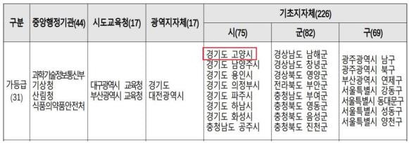시는 75개 시 단위 기초자치단체 중 상위 8개의 시로 선정되며‘가’ 등급을 달성해 최우수 기관으로 선정됐다. ‘가’ 등급은 306개 행정기관 중 평가 성적 상위 10% 기관에 주어지는 등급이다. 이로써 시는 정부 표창과 함께 특별교부세 등 재정인센티브를 지원받게 된다.