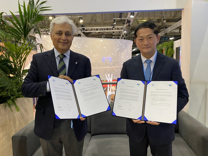 [사진설명] 온실가스 계정시스템 의향서 체결(왼쪽부터 오바이스 사메드 UNFCCC 부사무총장, 이재준 고양시장)