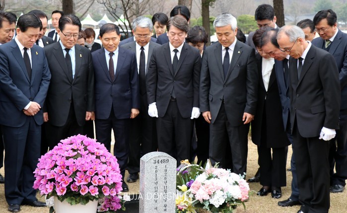 국민의당 안철수 대선후보와 당 지도부가 5일 오전 서울 동작구 국립서울현충원을 방문해 일반사병 묘역 앞에서 묵념하고 있다. 2017.04.05.(사진=안철수 캠프 제공)