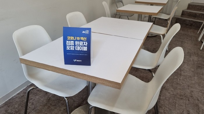 하지만 접종 완료자 포함 여부를 이용자가 알 수 없어 방역지침 위반 민원을 제기하는 사례가 발생하자, 시는 백신 접종 완료자 포함 테이블을 확인할 수 있는 안내 표시판을 추가 제작하여 배부하기로 했다.