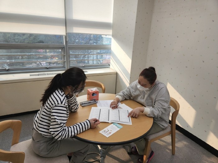 [사진설명] 센터에서 부모 상담을 진행하는 모습.
