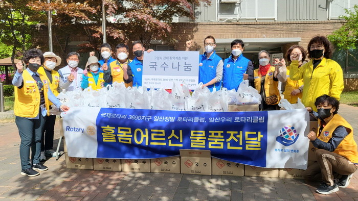 이번 취약계층 국수 나눔에는 국제로타리 3690 일산우정 로타리회(회장 모상철)의 후원을 통해 25인분 분량의 국수 200봉지가 준비됐다.