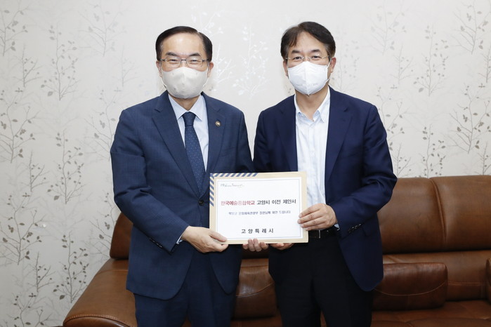 [부자동네타임즈 김인수기자] 이동환 고양특례시장이 한예종 유치를 위해 적극 나섰다. 고양시는 지난 9월 30일 킨텍스에서 개최된 한국 문화원 연합회 창립 60주년 기념식 환담자리에서 문화체육관광부에 한국예술종합학교 고양시 이전 제안서를 전달했다.