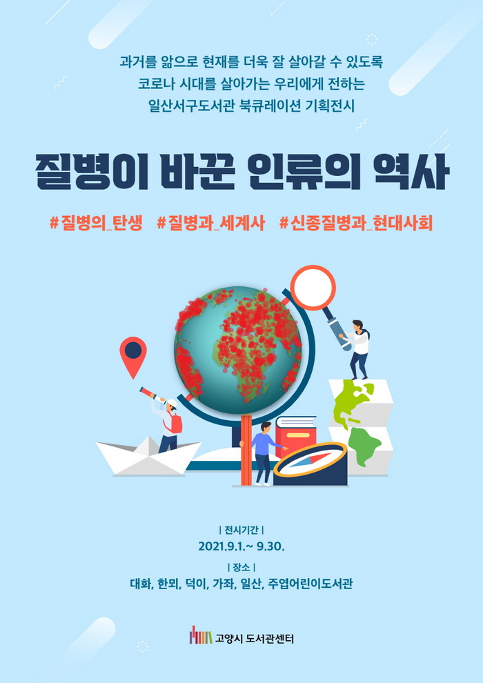[부자동네타임즈 김인수기자] 고양시 일산서구도서관과 6개 도서관(대화, 한뫼, 덕이, 가좌, 주엽어린이, 일산)에서 ‘질병이 바꾼 인류의 역사’라는 주제로 9월 한 달간 북큐레이션을 진행한다.