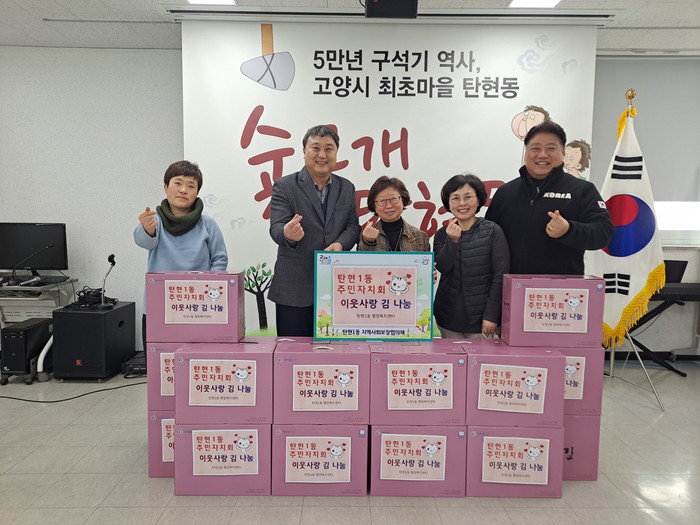 [부자동네타임즈 김인수기자] 고양특례시 일산서구 탄현1동 행정복지센터에서는 탄현1동 주민자치회(회장 조경순)로부터 설 명절을 맞아 어려운 이웃들을 위한 사랑의 김 선물세트를 전달받았다고 밝혔다.