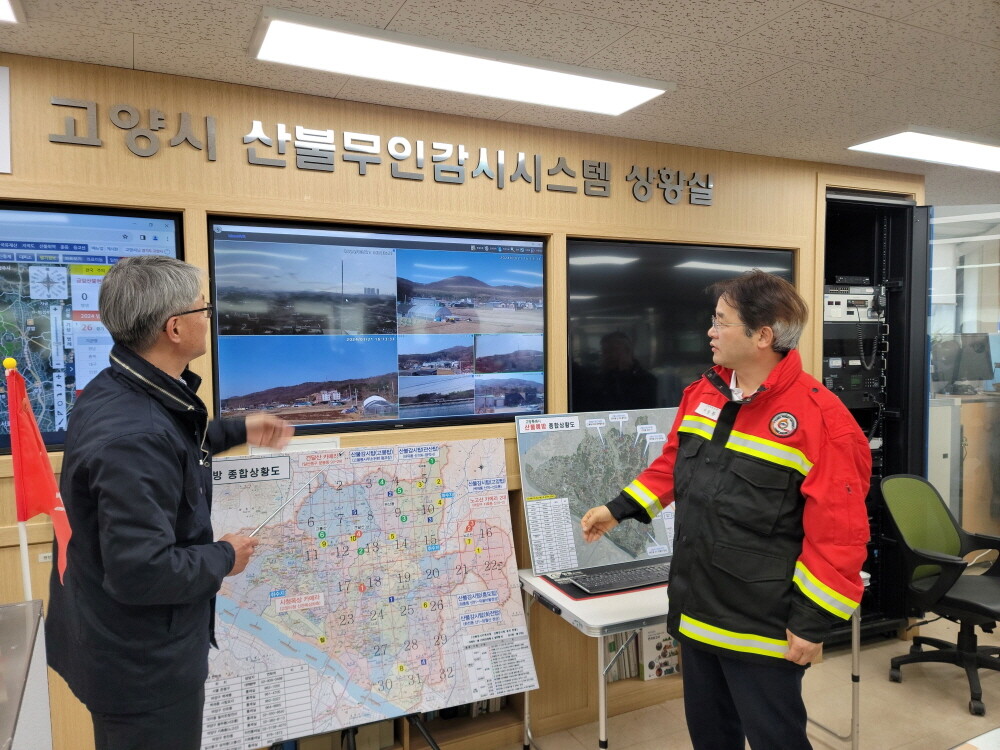 산불대책본부를 방문한 이동환 고양특례시장은 산불상황관제시스템과 산불감시카메라 등을 점검하고 현재까지 한 건의 산불도 발생하지 않도록 예방한 직원들의 노고를 격려하면서 각종 산불대비태세에 만전을 기해줄 것을 당부했다.