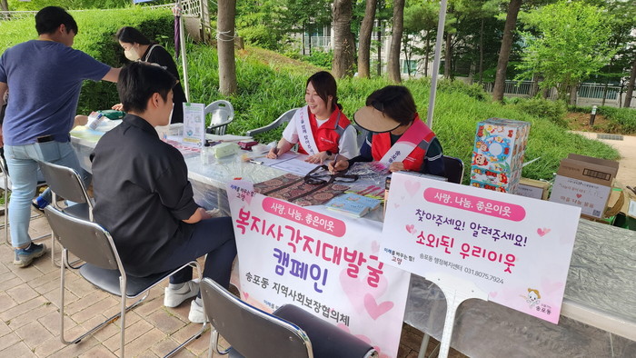 [부자동네타임즈 김인수기자] 고양특례시 송포동 지역사회보장협의체는 지난 10일 오후, 송포동 호미걸이공원에서 ‘찾아가는 복지상담소’및 복지사각대 발굴 캠페인을 진행했다.