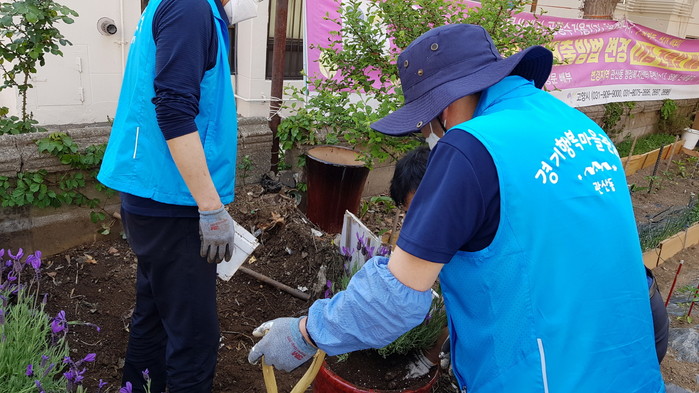 [사진설명] 경기행복마을관리소 지킴이들이 화단을 조성하고 있다.