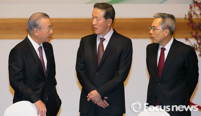 | △ 29일 오전 서울 여의도 국회 사랑재에서 열린 경제단체장 초청 여야 원내대표 및 정책위의장과의 간담회에 앞서 김인호(왼쪽부터) 한국무역협회장, 허창수 전국경제인연합회장, 하영구 전국은행연합회장이 대화하고 있다. 박동욱 기자 fufus@focus.kr |