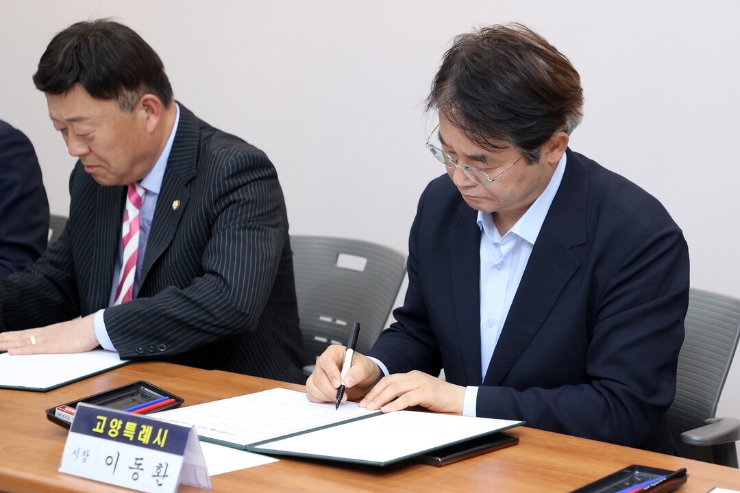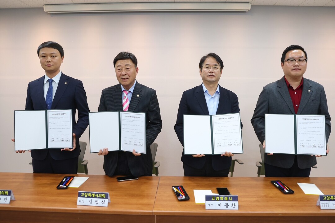 이날 협약식에는 이동환 고양특례시장, 김영식 고양특례시의회 의장을 비롯해 여.야 양당 대표의원(국민의힘 박현우 의원, 민주당 최규진 의원)이 참석했다.