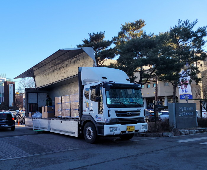 [사진설명] 신속항원검사 키트를 실은 수송차량.