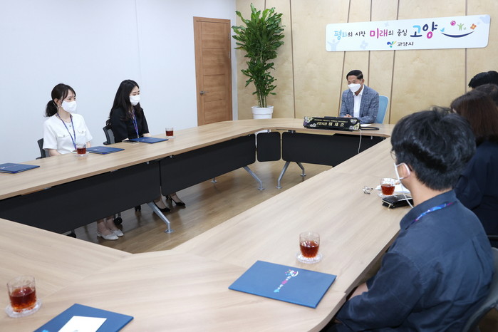 이재준 고양시장은 시상식 후 민원처리 담당자들과의 간담회에서 민원처리기간을 단축해 시민의 경제적 시간적 비용을 절감한 담당자들에게 감사를 전하고, 담당들이 일선에서 민원 처리를 하면서 느낀 애로사항과 건의사항을 청취했다.