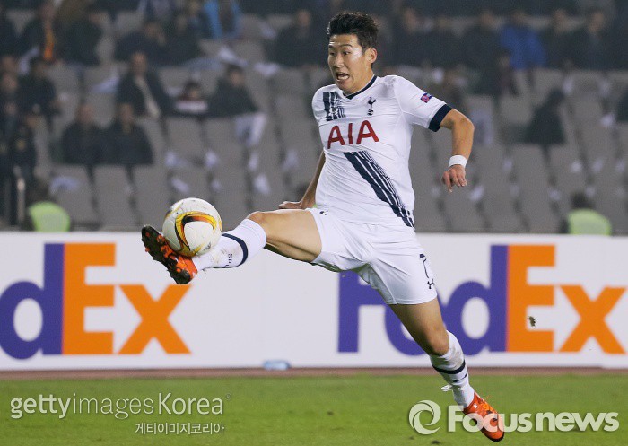 △ <바쿠/아제르바이잔=게티/포커스뉴스> 토트넘 소속 손흥민이 11월27일(한국시간) 열린 카라바흐와의 유로파리그 조별라운드 경기에서 드리블하고 있다. (C)게티이미지/멀티비츠