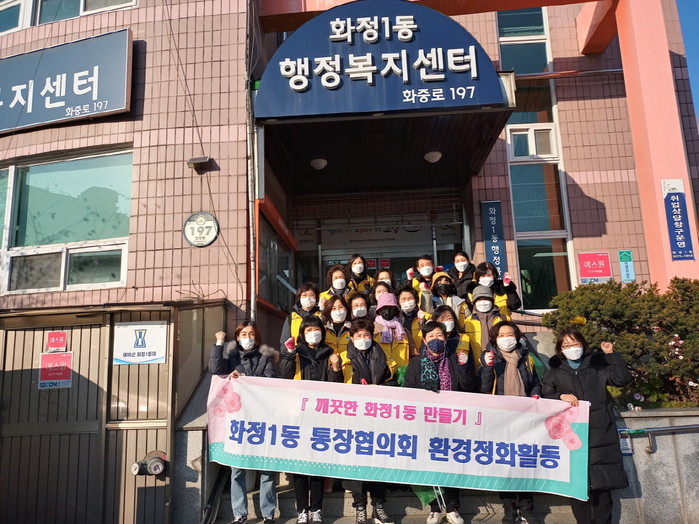 황선혜 화정1동장은 “쌀쌀한 날씨에도 깨끗한 마을을 만들기 위해 환경정화활동에 참여해 준 통장협의회에 깊은 감사를 드린다. 앞으로도 살기 좋은 화정1동을 만들기 위해 최선을 다하겠다”고 밝혔다.
