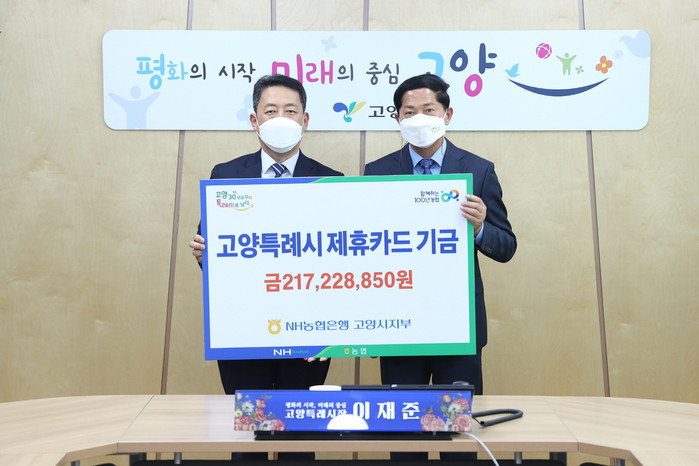[부자동네타임즈 김인수기자] 고양시는 지난 11일 NH농협은행 고양시지부(지부장 오영석)로부터 제휴카드 적립기금 2억 1,722만원을 수령했다고 밝혔다.