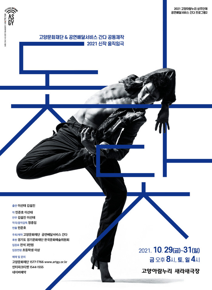 [부자동네타임즈 김인수기자] 고양문화재단(대표이사 정재왈)은 오는 10월 29일(금)부터 31일(일)까지 고양아람누리 새라새극장에서 상주단체 공연배달서비스 간다와 공동 제작한 신작 무용극 돛닻을 선보인다. 이번 작품은 현대무용수이자 안무가인 이선태가 그 만의 예술 세계를 만들어가는 과정을 담아낸 무용극으로, 자신의 세계를 집요하게 탐구하는 한 예술가의 인생 여정을 돛을 올리고 닻을 내리는 항해에 비유한다. 특히, 움직임을 극에 결합하는 참신한 시도로 창단 초기부터 독보적인 작품 세계를 이어오고 있는 공연배달서비스 간다가 보여주는 무용극이다.